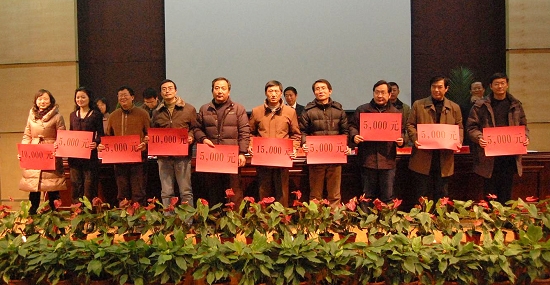 会上,校领导宣读了校级科技创新团队成立、表彰决定以及08年科技工作表彰决定和名单。王雪峰书记、陈志刚校长给校级科技创新团队颁发了匾牌和聘书并给国家技术发明二等奖获得者