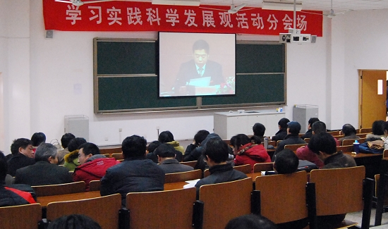 第二、准确把握学习实践活动的要求与步骤。王书记希望全校党员干部明确学习实践活动的指导思想、目标要求、基本原则、重要任务和方法步骤。结合我校实际,这次学习实践活动的目标要求主要有四个方面的内容:一是确保党员干部受教育;二是确保科学发展上水平;三是确保人民群众得实惠;四是积极为服务地方做贡献。活动中要始终把握好五条基本原则:一是坚持解放思想;二是突出实践特色;三是贯彻群众路线;四是正面教育为主;五是推进科学发展。活动要推进六项重要任务:一是努力建设教学研究型大学;二是深入贯彻以人为本理念;三是彰显大工程观导向的高等工程教育特色;四是建设优秀的大学文化;五是继续推进开放办学;六是科学整合全校资源。在认真搞好思想发动的基础上,我校学习实践活动分学习调研、分析检查、整改落实三个阶段进行,要坚持边学习、边调研、边整改,把解放思想、统一认识贯穿始终,把改革创新贯穿始终,把解决问题贯穿始终。