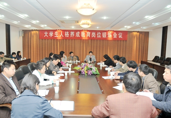 学生处负责人主持会议并诠释了我校学生人格养成教育岗位锻炼方案的实施方法,学校相关部门工作人员参加了会议。