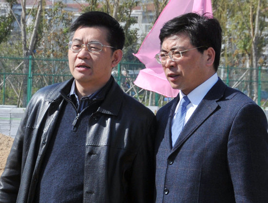 浦玉忠校长陪同武进区长徐伟南考察我校体育馆建设