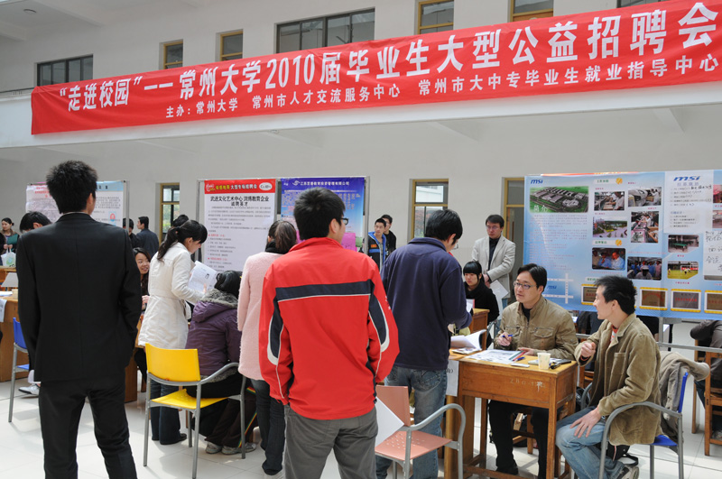 4月17日上午,我校在武进校区成功举办了“走进校园——常州大学2010届毕业生大型公益招聘会”。江苏省高校招生就业指导服务中心副主任黄晓曦、常州市人才交流服务中心主任程沫芝、常州市大中专毕业生就业指导中心主任王清林、我校副校长陈奎庆到会并指导工作。招生就业工作处相关负责人及工作人员陪同。