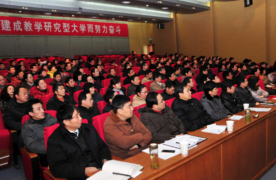 1月18日上午,我校2010年度校级领导班子和领导干部述职述廉及民主测评大会在文彰楼报告厅召开。省委组织部干部五处副处长陈玉明出席大会并讲话,全体校领导、中层干部、两委委员、省市人大代表、政协委员、校民主党派负责人、正高专业技术职务教师代表等180余人参加大会。校党委书记史国栋主持大会。