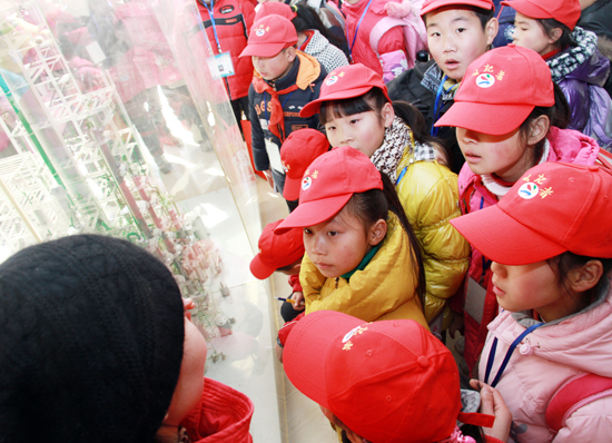 开营仪式后,200多名小记者分成四组,在我校讲解师生的带领下,先后参观了我校常州非遗展示馆和我校石化工业中心。常州非遗留青竹刻、常州梳篦、常州乱针绣、常州面塑等传人专程赶到我校常州非遗馆,为小记者们现场表演技艺,并接受小记者采访。我校常州非遗馆讲解员、石化工业中心讲解老师耐心细致详细的讲解给小记者和带队老师们留下了深刻而良好的印象。(编辑 葛金华)