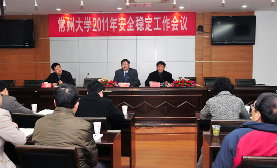 保卫处通报了《常州大学2011年安全工作要点》及《常州大学创建“江苏省平安校园”工作实施方案》。浦玉忠校长代表学校与学校二级单位签订了《常州大学安全稳定目标责任书》。