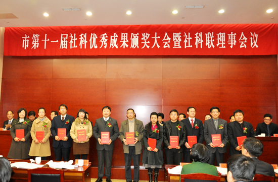 3月18日下午,常州市第十一届哲学社会科学优秀成果颁奖大会暨常州市社科联四届六次理事扩大会议在市行政中心隆重举行,对全市第十一届社科优秀成果奖的获奖个人、2010年度的先进学会和优秀社团工作者给予了表彰。市委常委、宣传部长徐缨出席并做重要讲话,我校副校长王卫星、人文社科处处长张宏如和获奖教师代表应邀参加。