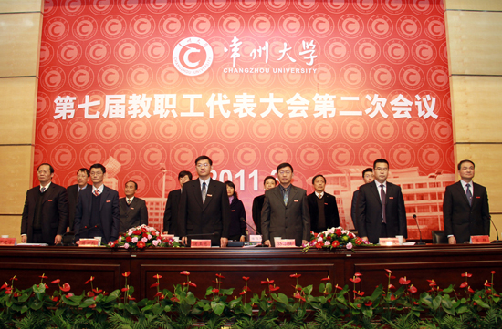 常州大学第七届教职工代表大会第二次会议在国歌声中开幕