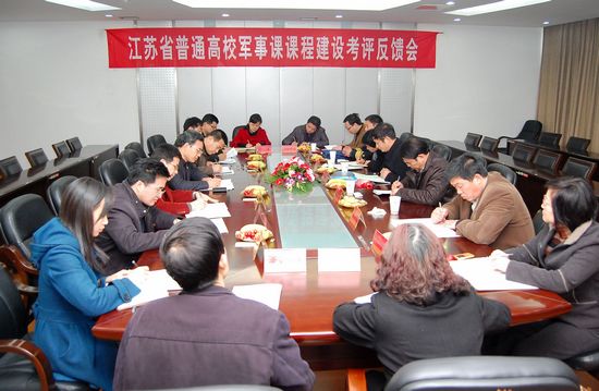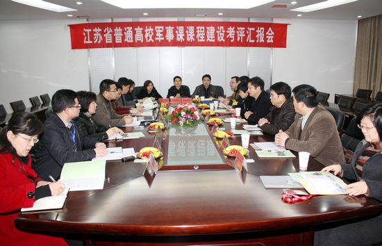 3月23日上午,由江苏省教育厅体卫艺处副调研员时文山任组长的江苏省教育厅军事课课程建设考评第四专家组一行7人对我校军事课课程建设情况进行考评,陈奎庆副校长出席会议并讲话,校办、人事处、教务处、财务处、人武部、后勤管理处、团委、后勤集团、校医院等部门领导参加汇报会。