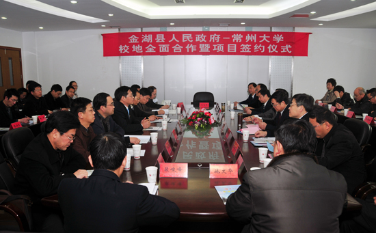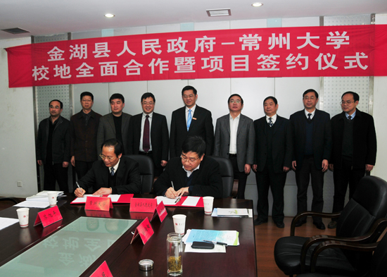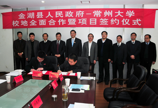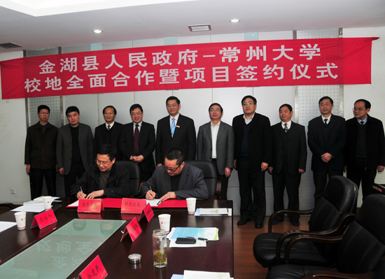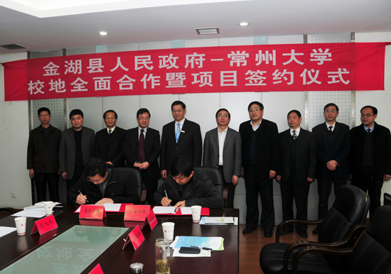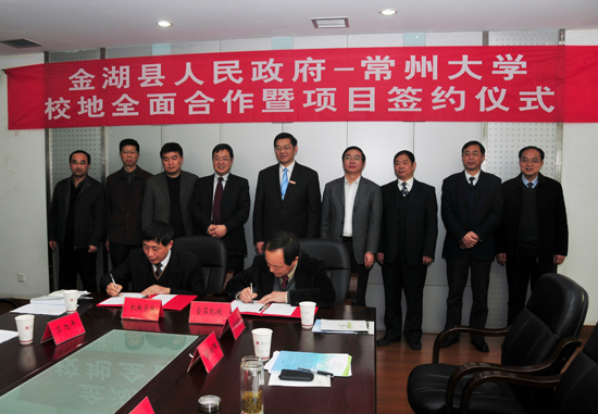 金湖县魏宏亮副县长与丁建宁副校长签署了“金湖县人民政府—常州大学”校地全面合作协议,金石机械、红光仪表分别与机械学院、信息学院签署了江苏省重大成果转化项目合作协议,江苏华海测控有限公司、江苏杰创科技有限公司与信息学院签署了合作协议。金湖县企业代表与我校教师代表进行了广泛而深入的产学研合作交流。