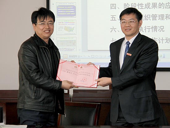 浦玉忠校长向席北斗研究员颁发常州大学兼职教授聘书