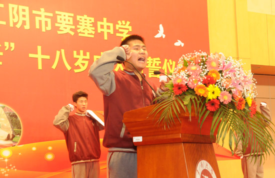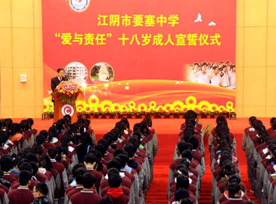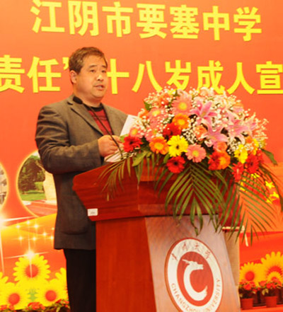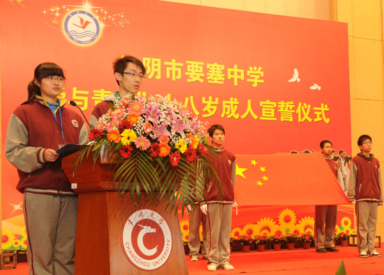 史国栋书记代表学校致欢迎词,对要塞中学沈建龙副校长一行表示热烈欢迎。成人仪式上,史书记用“爱就是升华的责任,责任就是行动的爱”诠释了“爱与责任”的深刻内涵,并用美国社会学家莫里施瓦茨教授的格言警句劝导学生在即将踏上人生新的旅途中,让生命充满爱与责任,激励他们向着更加激情澎湃的青春年华出发。最后,史国栋书记祝贺在大学举行成人仪式宣誓后的每位学生站在了人生又一个新的高度,实现了精神成人和大学文化的完美对接,并祝愿他们成为一名真正的大学生,在常大校园再话精神成人。史国栋书记热情洋溢的话语博得全场师生阵阵掌声。