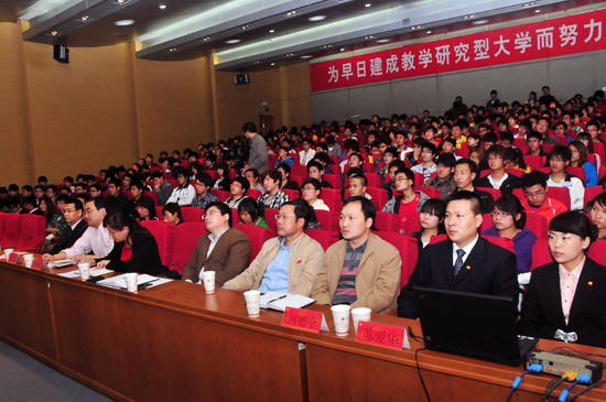陈奎庆副校长感谢宣讲团精彩的演讲,他指出,继承和弘扬大庆精神铁人精神是时代赋予大学生的责任和要求;学习大庆精神、铁人精神,要结合我校“创先争优”活动的开展加强学习;要立足于学生未来个人的发展和意志的磨炼来加强学习。他希望广大同学积极倡导新时期“铁人精神”所蕴涵的奋发向上的积极态度、锲而不舍的意志品质、百折不挠的旺盛斗志。珍惜光阴、认真学习、顽强拼搏、自强不息、勇攀高峰,为国家建设做出新的更大的贡献!