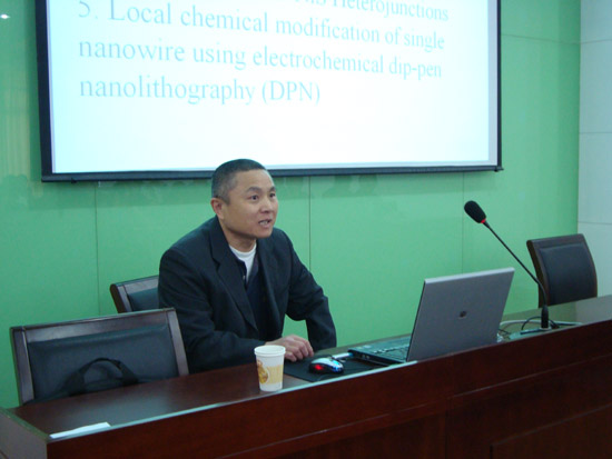 李建业教授主要从事一维纳米结构及纳米器件研究,他为学院师生做了有关氮化镓、氧化锌、硫化锌等几种半导体纳米材料的制备、表面修饰及其相应器件的光学性能研究,并对上述科研领域的发展前景作了展望。