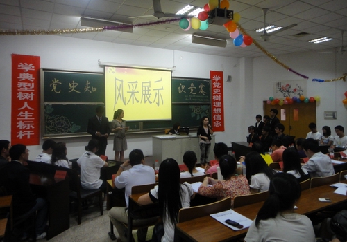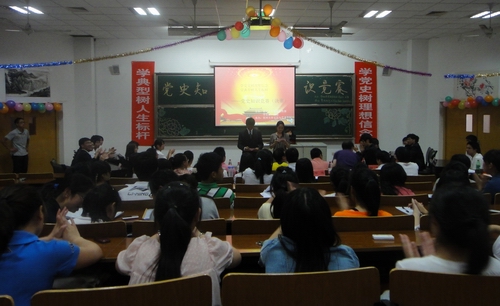 正值庆祝中国共产党建党90周年之际,我校为切实推进创先争优活动,进一步加强爱国主义教育和对党史知识的学习宣传,落实省教育工委开展“学党史树理想信念,学典型树人生标杆”的活动要求部署,由常州大学党委宣传部、校学工部、校团委主办,文法与艺术学院承办的的党史知识竞赛决赛于5月15日晚6点在W7阶成功举办。党委宣传部、文法与艺术学院党委及各二级学院团委相关人员参加了本次活动。