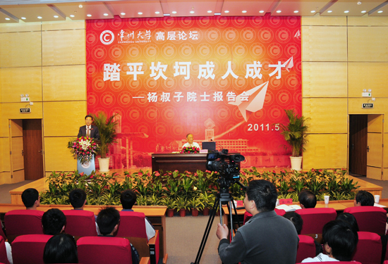 5月21日下午,中科院院士、原华中科技大学校长杨叔子先生在文彰楼报告厅作了题为《踏平坎坷成人成才》的报告。校党委书记史国栋、副校长陈群出席报告会,两办、党委宣传部、科技处、学生工作部、文法学院等相关部门领导和部分教师代表参加报告会,300多名学生聆听报告。史国栋书记在会前会见了杨叔子院士,并主持了报告会。