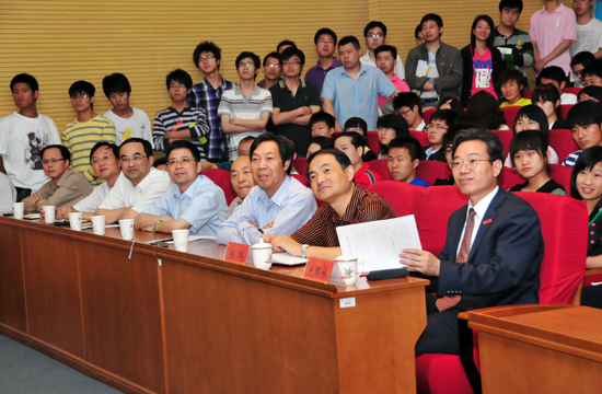 杨叔子院士以他丰富的经历,回顾曾经的坎坷和挫折,诠释了勤奋、坚持、开拓、创新以及信念、理想的价值和意义,报告同时也展现了杨叔子院士的博大精深、睿智敏锐,以及面对坎坷的从容豁达和执着的精神追求。报告让与会师生进一步感怀杨叔子院士的人格魅力,以及对社会、对青年、对未来的崇高的责任感和真挚的情怀。报告会上,杨叔子院士还现场回答了同学们关于高考制度改革、传统文化进校园、创新能力培养等方面的问题。整场报告会气氛十分热烈,互动频频,精彩纷呈,掌声经久不息。