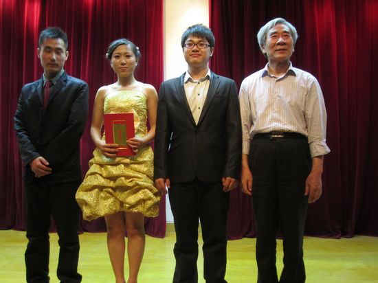 校关工委委员朱净之老师为一等奖获得者颁奖