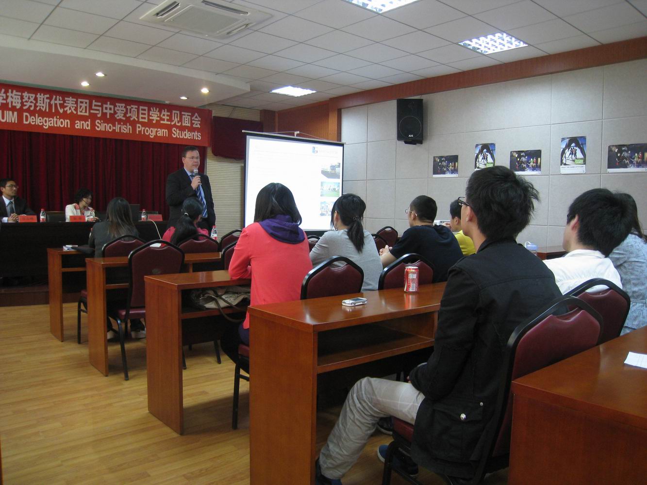 浦玉忠校长代表校党委、行政对爱尔兰客人的到来表示欢迎,他表示,与梅努斯建立合作关系以来,双方合作紧密,交流频繁,两校合作办学的规范和质量得到了社会的认可,已成为我校国际合作交流的典范,希望进一步推进两校在各层次、更广阔领域上的稳定密切合作。