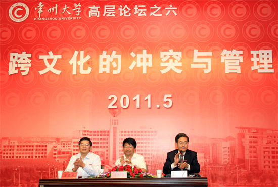 5月27日下午,中国海洋石油总公司人力资源部副总经理、高级经济师陈和志做客“常州大学高层论坛”,应邀为我校师生作了题为“跨文化冲突和管理”的报告,300多位师生在文彰楼报告厅聆听了报告。校党委书记史国栋、校长浦玉忠出席报告会,史国栋书记主持报告会。