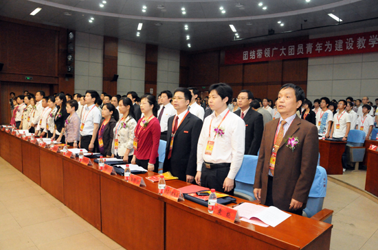 阳光灿烂的五月,榴火飘香,在全国人民喜迎建党90周年之际,共青团常州大学第八次代表大会暨常州大学第八次学生代表大会于5月28日在常州科教城科教会堂隆重召开。团省委学校部部长俞锋,团市委书记胡竹,团市委副书记薛晔,省内部分兄弟院校和在常高校的团委书记应邀参加开幕式。校党委书记史国栋、校长浦玉忠、副校长陈奎庆出席开幕式,学校相关职能部门和各二级学院相关领导参加了大会。校团委副书记牟静主持大会。280位团代会代表和学代会代表参加了会议。