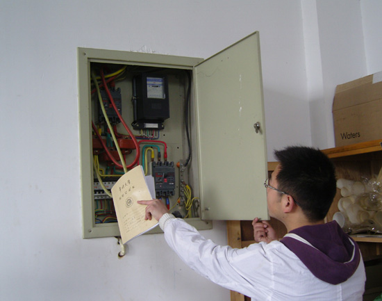 研究生党员认真检查实验室用电情况