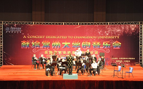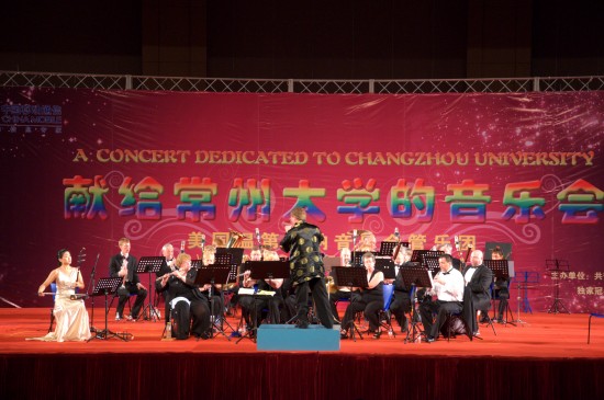 为进一步推动中美文化交流,增进双方的沟通、了解与文化认同感,美国温第安纳管乐团应邀来我校交流演出。6月14日晚,由中国移动友情支持的“A Concert Dedicated to Changzhou University”(献给常州大学的音乐会)在常州大学体育馆隆重举行。美国著名的管乐指挥和教育家、乐团创始人杰夫•斯考特•德博尔博士担任本场音乐会指挥,完美演绎了《扬基都德赋格曲》、电影《辛德勒的名单》主题曲等近二十首中外名曲。常州大学副校长陈奎庆,各职能部门、二级学院领导,师生代表等2500多人到场聆听,共同完成了一次和谐的中西音乐文化巡礼。