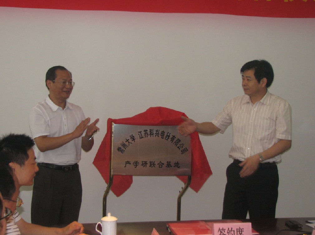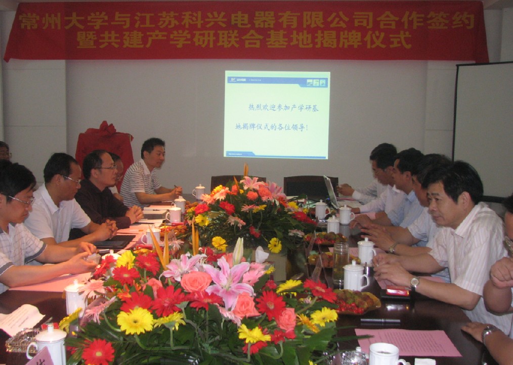 丁建宁副校长与江苏科兴电器有限公司董事长姚金龙代表双方签署共建产学研联合基地协议。丁建宁副校长与泰兴市副市长姜佩剑为“常州大学-江苏科兴电器有限公司产学研联合基地”揭牌。