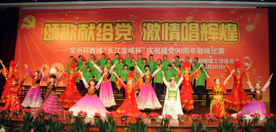 6月20日下午,由中共常州市科教城工作委员会举办的“颂歌献给党,激情唱辉煌”庆祝建党90周年歌咏比赛在常州轻工学院礼堂举行。由科教城机关、所在高校、入驻科教城科研院所联队和中科院常州中心等组成的 11个合唱队参加了比赛。王成斌副市长出席活动并讲话。