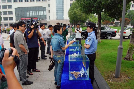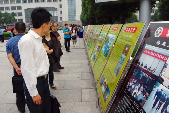 市委常委、政法委书记孙国健、市人大常委会副主任邵长生、副市长、市禁毒委主任、公安局局长尚建荣、市政协副主席赵忠齐、我校副校长陈奎庆等出席活动。我校经管学院、药学院、外语学院、信息学院、数理学院、环境学院500余名师生参加了本次活动。公安人员对麻菇(冰毒片)、冰毒、摇头丸等毒品的识别和危害进行了详细的讲解,并在现场公开焚毁。