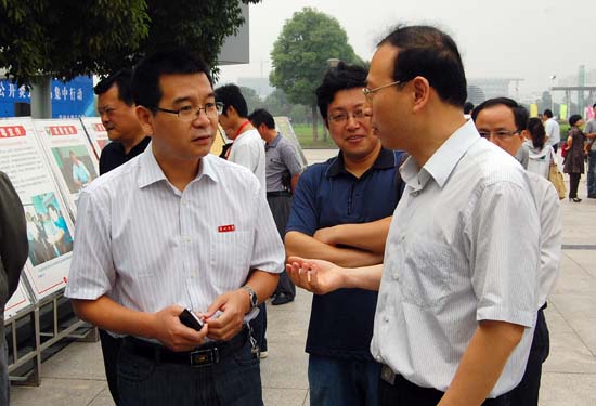 尚建荣副市长与陈奎庆副校长在宣传展区交流工作