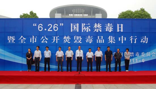 6月26日上午,常州市禁毒委员会组织的“6.26”国际禁毒日暨全市公开焚毁毒品集中行动在常州大学武进校区南广场举行。