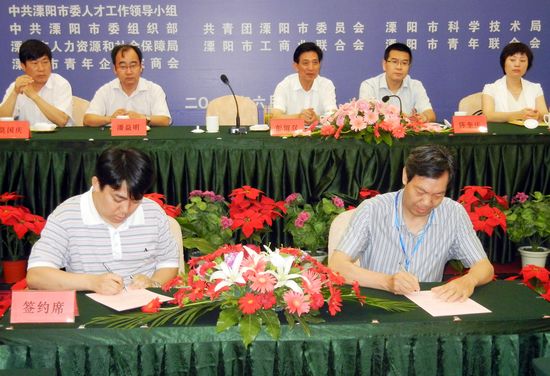 会上,我校团委与溧阳市委人才办签订“共青团助推转型升级全面合作协议”。我校科技处与南渡镇共同签署了《全面合作(意向)协议书》,双方表示将在绿色化工、新能源、新材料、电子信息、先进制造、管理等领域展开全面合作。