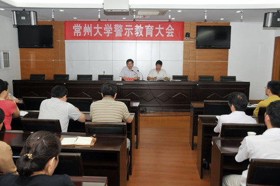 2011年7月1日下午,我校在武进校区文正楼第四会议室召开警示教育大会,校党委副书记、校长浦玉忠出席会议,纪委办、监察处、审计处、人事处、教务处、学生处、资产处、财务处、基建处、后勤管理处、白云校区、研究生部、体育部、信息中心、图书馆、后勤集团公司等单位科以上干部和相关人员参加了会议。校纪委副书记、监察处处长束荣新主持会议,并通报了我省高校违法案件查处工作情况,剖析了有关案件的特点和产生的原因。