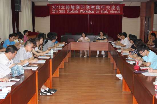 6月28日下午,国际教育交流学院2011年跨境学习学生临行交流会在多功能厅举行。国际教育交流学院杨燕院长、杨琳书记和学院全体工作人员以及2011年即将进入跨境学习的全体学生参加了交流会,杨燕院长主持会议。