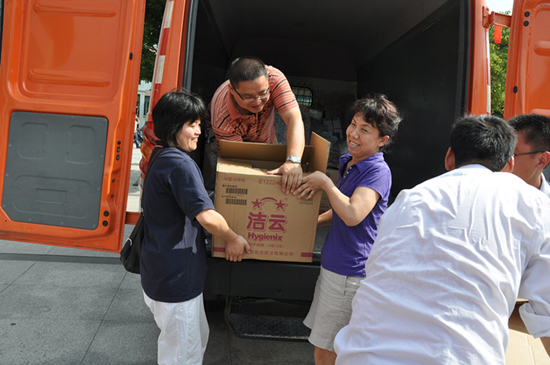 7月2日上午,满载着常大师生员工爱心和祝福的包裹即将踏上远去青藏高原的路途,校工会、校团委、部分分工会、二级学院团委代表一起把捐赠物资送上了车,捐款中的一部分购买了当地紧缺的工具书和部分文学类、科学类图书寄至边坝,剩余捐款将全数汇至西藏昌都地区边坝县总工会。浓浓的情谊随着车轮远去,常大师生的爱心定会在西藏雪域中绽放出绚烂的格桑花。