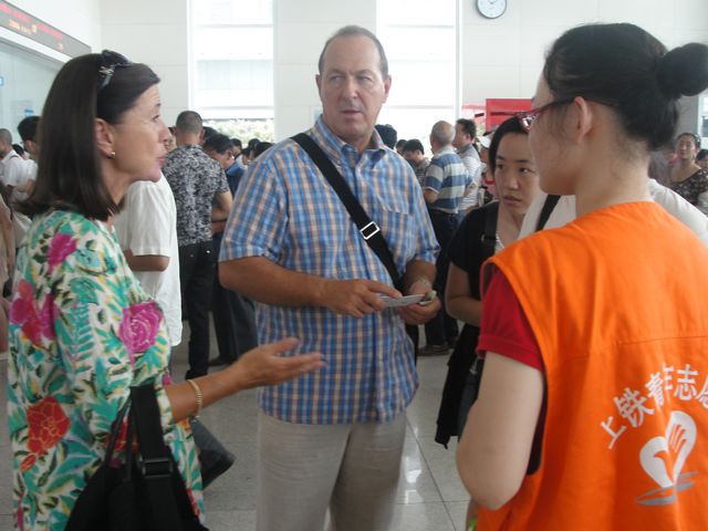 7月2日早晨求索学社实践小分队从学校出发,八点钟到火车站前广场集合, 在与火车站的负责人取得联系后,在北广场前举行了活动启动仪式。仪式结束后,大家立刻投入到工作中,在南广场、北广场售票大厅以及候车厅各安排志愿者数名,协助火车站工作人员维持秩序,同时为不熟悉常州火车站的旅客指导购票、候车、检票。此次活动服务乘客数量每天300余人次,包括一些老年人、妇女,还有部分的外国乘客朋友。本次活动将历时8天。