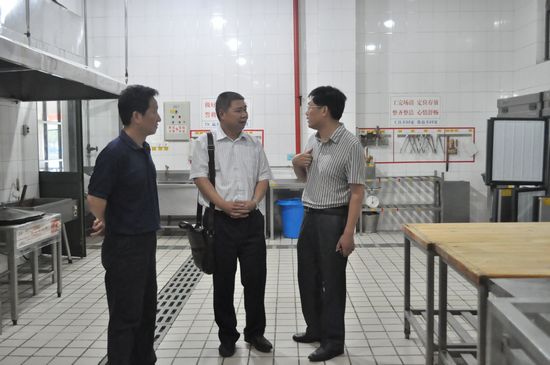 江苏省教育厅拟定于今年10月份在我校召开“全省高校学生食堂精细化规范化管理推广现场会”。为确保现场会开出成效,7月14日-15日,省教育厅安全保卫与维护稳定处副处长张虎成、省高校伙食专业管理委员会主任兰家勇率领南京大学、东南大学、南京理工大学等9所高校学生伙食管理专家组成的专家组,来我校考察学生食堂“7S”精益化管理工作,并指导我校学生食堂规范化精细化管理推广现场会的筹备工作。我校副校长陈奎庆、副校长陈群接待了专家组,并出席汇报会和整改意见反馈会。