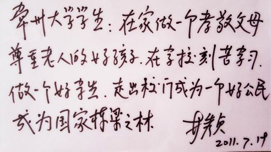 林秀贞老人寄语常大学子