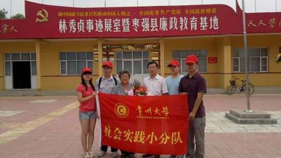 暑假期间,我校大学生社会实践小分队来到河北枣强县王常乡南臣赞村开展“学习秀贞精神 争做优秀青年”暑期社会实践活动。王常乡南臣赞村是全国优秀共产党员、2006年度感动中国人物、全国道德模范、全国十大母亲、新中国成立以来感动中国的双百人物之一的林秀贞的家乡,我校师生通过实践活动来切身体验林秀贞,感受林秀贞,用实际行动学习林秀贞。