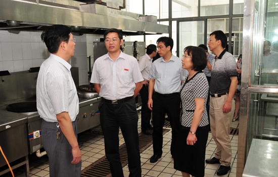 9月5日下午,省教育厅倪道潜副厅长、办公室副主任郁建文、省财政厅经济建设处周鳌梁副处长及常州市人力资源与社会保障局、教育局等有关部门的领导莅临我校,对我校新疆籍普通高校毕业生培训工作准备情况进行了督查。校长浦玉忠、副校长王卫星陪同倪道潜副厅长一行对新疆培训班的住宿安排、清真餐厅、教室和领队辅导员办公室、文体活动场地等进行了考察。校两办、继续教育学院负责人及相关人员陪同考察。
