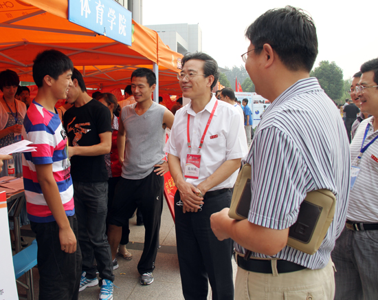 省教育厅副厅长朱卫国、副巡视员步锦昆在浦玉忠校长的陪同下视察迎新现场