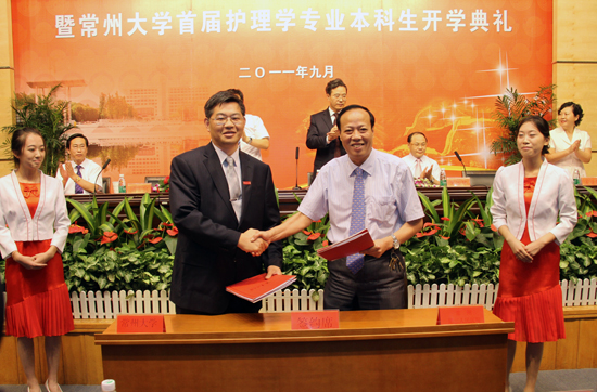 常州市第二人民医院为南京医科大学附属医院,是一所科室设置齐全,医技装备精良,技术力量雄厚,服务质量上乘,集医疗、科研、教学一体的三级综合性医院。此次常州大学与常州市第二人民医院合作开办护理学专业,使常州大学在专业设置上增加一个全新的门类——医学类学科,本科专业总数达到52个,涵盖工学、理学、管理学、经济学、文学、法学、艺术学、医学、农学以及教育学等十大学科门类,为学校建设成为综合性大学迈出关键性的一步。同时,护理学专业的开办也实现了常州地区医学类本科专业的突破,实现了常州医疗界多年具有自己的医疗高等教育和研究机构的梦想;它是我校为适应常州地方社会发展而重点建设的专业,也是为我国培养高素质,高水平的护理人才的需求,充分体现我校“服务地方、实现共赢”的办学理念。
