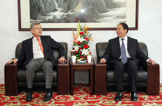9月10日上午,常州大学西班牙语专业发展论坛暨西班牙语专业新生开学典礼在图书馆六楼报告厅隆重举行。王成斌副市长会见了出席我校西班牙语专业发展论坛的嘉宾西班牙驻上海总领馆总领事冈萨罗•奥蒂斯先生,并就中西之间教育交流和合作等相关事宜进行深入讨论。(编辑 郁涛)