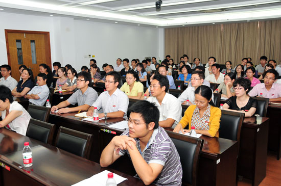 史国栋书记应邀为新教师作了岗前培训的首场报告,他从常州这座充满活力的城市谈到正在实现又一次腾飞和又一次华丽转身的常州大学,为新同事选择常州、选择常州大学喝彩、鼓劲,希望新同事在常州大学这个充满关爱和归属感的发展共同体里追求幸福,追求快乐,获得成功;史国栋书记从大学教师的职业崇高性谈到教师自身素养培养的重要性,寄语新加盟的中青年才俊要认真做人、做事、做学问,实现立德树人、立功为国、立言为业的人生理想。