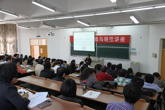 9月21日下午,在我校武进校区教学主楼W9阶,校教学关键岗尹芳华教授受邀为我校青年教师献上了一场精彩的题为“漫谈教师素质和课堂教学”的讲座。上百位青年教师分享了尹芳华教授的宝贵教学经验。此次活动是教务处、人事处组织的“青年教师教学技能培训”系列讲座之一。教务处处长席海涛主持讲座。
