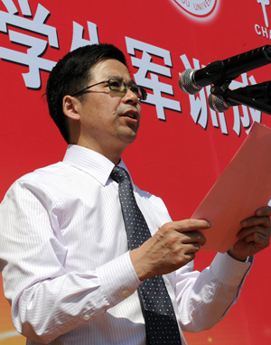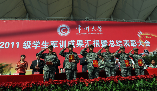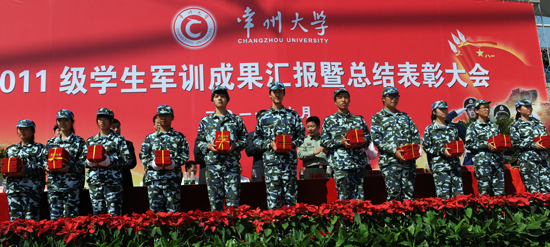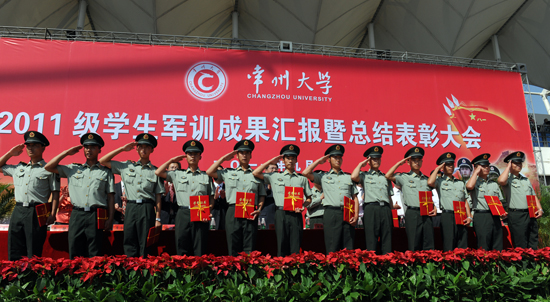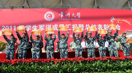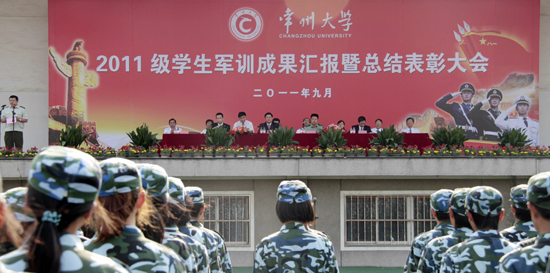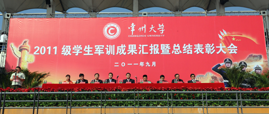 9月24日,我校2011级学生军训成果汇报暨总结表彰大会分别在武进校区、白云校区隆重举行。中国人民解放军73037部队首长,我校校长浦玉忠、副校长陈奎庆以及两办、组织部、宣传部、教务处、学生处、校团委、后管处、白云校区管委会等职能部门负责人、各学院负责人在主席台就座。各学院学工负责人、2011级新生辅导员和全体新生参加了大会。大会由校人武部部长闫海波主持。
