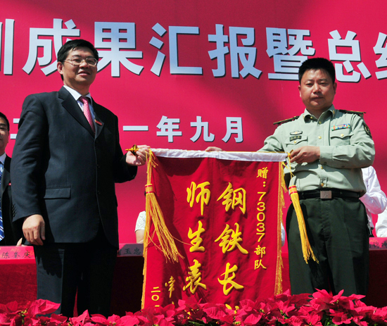 浦玉忠校长代表学校向中国人民解放军73037部队赠送锦旗。