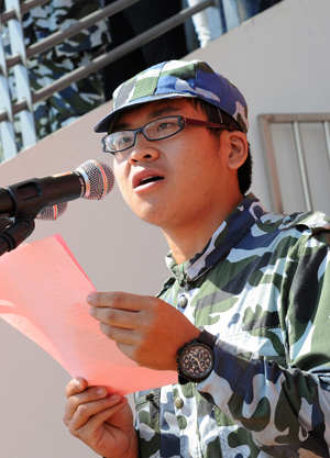 党委办公室、校长办公室主任陆锦冲宣读了军训表彰决定,对军训过程中涌现出来的21名优秀教官、10名优秀政治指导员、298名优秀学员、24名内务比赛优秀个人和17个优秀方队进行了表彰。军训优秀学员代表和优秀教官代表分别在大会上发言。