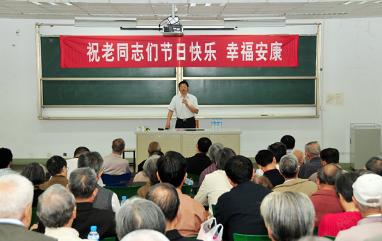 浦玉忠校长代表学校党政领导和全校师生员工对离退休教职工致以节日的祝贺和诚挚的问候,对老同志们当年为学校所做的贡献表示衷心的感谢。浦玉忠校长向在座的离退休教职工通报了学校在教学、科研、学科建设、招生、宣传等方面取得的成果、进展、提高和突破的情况以及今后的工作重点。浦玉忠校长强调,离退休教职工是学校过去的功臣,现在的财富,学校各部门要以儿女之心、晚辈之情为老同志们办实事、做好事,让离退休教职工们安度幸福晚年。
