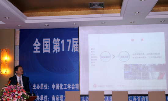 开幕式上,浦玉忠校长介绍了我校办学的基本情况和化工学科的科研实力,并预祝大会取得圆满成功。随后我校陈群教授作了《催化用离子交换树脂的设计、合成、性能及在精细化学品生产中的应用》大会报告,陶永新副教授、周维友博士、王亮博士等6人作了分会场报告。
