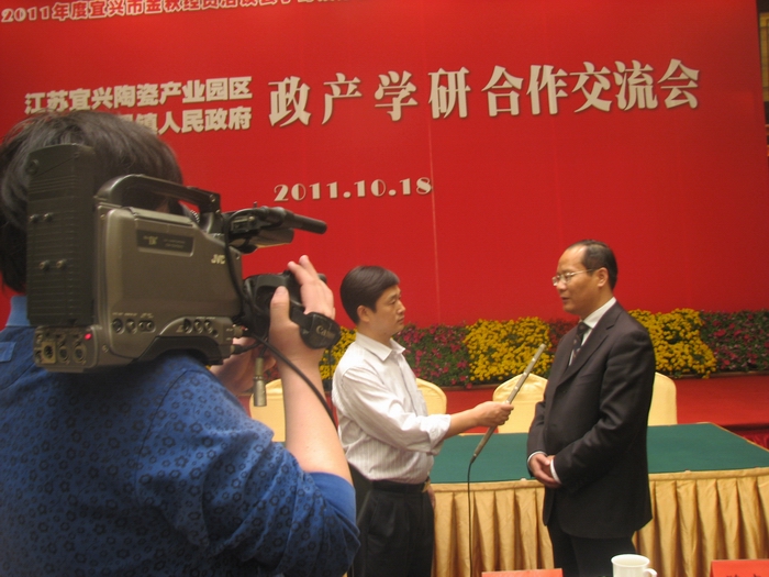 10月18日,2011江苏宜兴陶瓷产业园区、宜兴市丁蜀镇人民政府政产学研合作交流会在宜兴金陵竹海国际会议中心隆重举行,我校作为合作单位应邀参加,副校长丁建宁出席了本次会议,科技处、人事处、怀德学院相关负责人参加了会议。